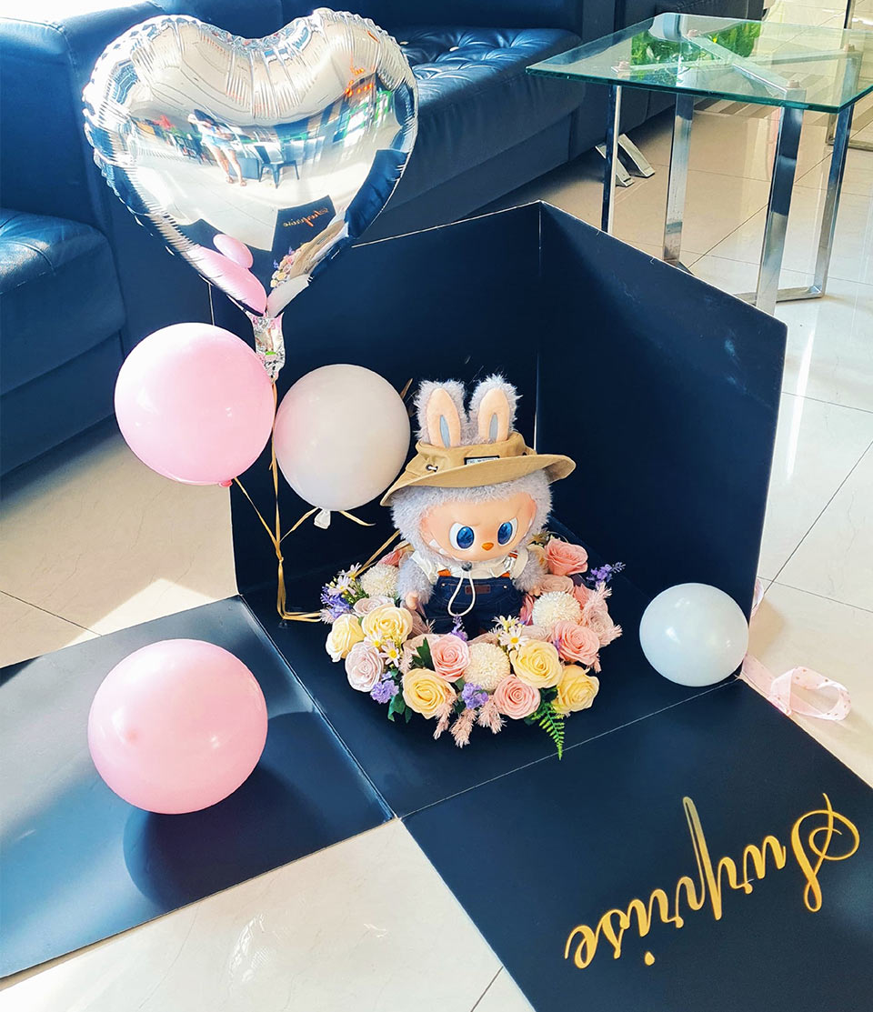 Labubu doll with a surprise flower box 惊喜花盒📦🎀